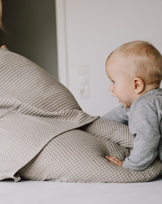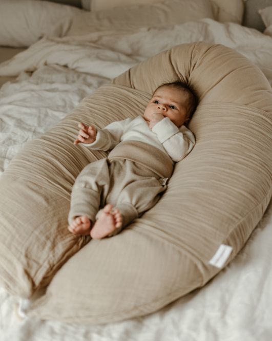 Das lässt sich nicht pauschal beantworten, da es hierbei vor allem auf die individuellen Bedürfnisse deines Kindes und der Zimmertemperatur ankommt. Im Sommer kannst du beispielweise deinem Kind einen kurzärmeligen Body darunterziehen und im Winter einen langärmligen Body. Behalte hierbei dein Kind im Auge, sodass du rechtzeitig bei Überhitzung oder Unterkühlung reagieren kannst.